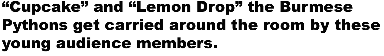 Bring Some Life to Your Party! Let us come to your home or event site, and provide a hands-on, interactive, exciting reptile or insect program for your birthday child. We typically bring 9-12 different animals for a hands-on, interactive, animal demonstration. Some of our guests include snapping turtles, giant tortoises (up to 65 lbs), bearded dragons, monitor lizards (up to 5’), ball pythons, boa constrictors, and Burmese pythons (over 9’). We tailor our parties for all ages from 3 to adult. We also have the following themes: Rock & Mineral and Dinosaur programs (All of the participants receive themed party favors.) |