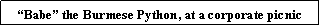 Static/Petting Zoo Demonstrations: Similar to above description, except the animals are exhibited in temporary enclosures with interpretive signs by each animal. This format permits the attendees to drift in and out of the exhibit, while still being able to touch some of the animals. This program incorporates over 40’ of enclosures, with 15- 20 animals on display. |